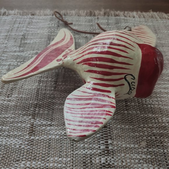 Fun and Colorful Hand Made Hanging Papier Mache Tropical Fish, made in a Caribbean Island, see pictures, Good Vintage condition, wear marks on lower Fin, Rare Find beautifully Hand Made and Hand Painted, 11 inches in height, 8.5 in length and 3.5 inches in width, Please see pictures for further details