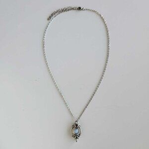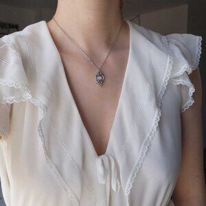 Vintage Whimsical Medieval Fairy Opalite silver chainmail pendant necklace