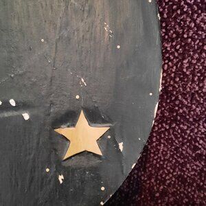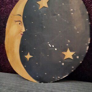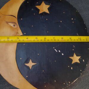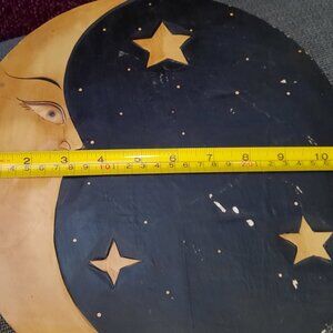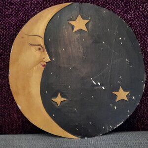 Cute vintage wooden plaque. Sun on one side, moon and stars on the other.