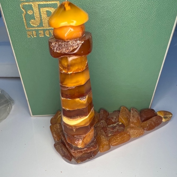 Vintage White Baltic Butterscotch EGG YOLK AMBER FIGURINE LIGHTHOUSE 50g