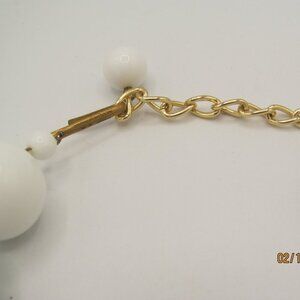 Adorable vintage white round bead necklace with short chain at hook clasp. Chain and clasp appear to be brass and the hook is stamped "West Germany."
