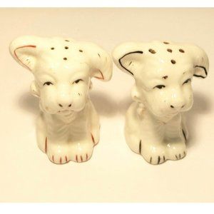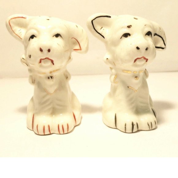 Vintage White Black / White Red Dog, Salt & Pepper Shakers Condiment Set - Japan