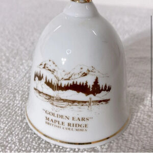 Vintage White Brown Gold Maple Ridge British Columbia Ceramic Souvenir Bell