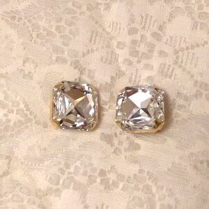 Vintage White Clear Crystal Gold Tone Earrings Diamond Non-Pierced Clip Earrings Timeless VTG Jewelry