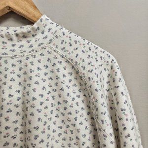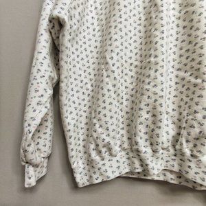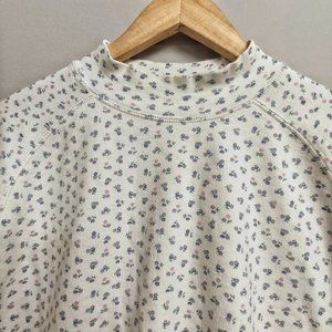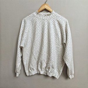 Vintage White Cotton High Neck Sweatshirt Floral Print