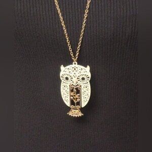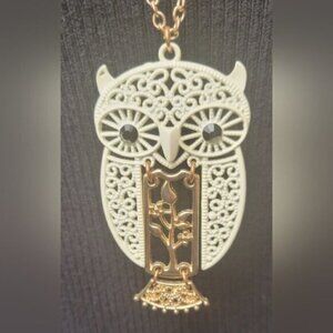 Vintage White Enamel and Gold Owl Pendant Necklace