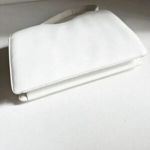 Elevate your fashion game with this vintage-inspired top handle bag. The chalk white faux leather exterior exudes elegance and sophistication, while the brown lining adds a touch of rustic charm.