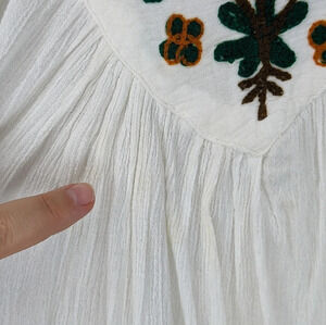 Delicate Floral Embroidery: Beautiful green-orange floral embroidery adds a touch of bohemian charm.