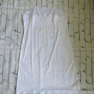 Beautiful elegant white full camisole slip with lace. This slip dress has adjustable straps for a better fit. Brand is La Loire. This lovely piece can be worn under a dress, but also as a night gown as the fabric is soft and comfortable.