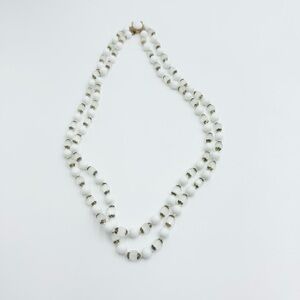 This elegant vintage necklace features multiple strands of white glass beads, creating a classic and timeless look. Perfect for adding a touch of vintage charm to any outfit.