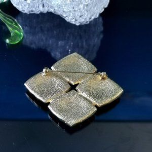 Beautiful gold-tone brooch with black matte enamel details and 4 white howlite cabochon stones.