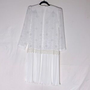 Vintage White Long Sleeve Pleated Midi Shift Bride Mother Of The Bride Dress M