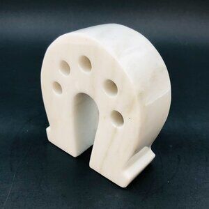 Vintage White Marble Horse Shoe Pencil Holder, Natural Stone Desktop Organizer, Equestrian Office Decor, 80s Ranch Marble Stationery Tool