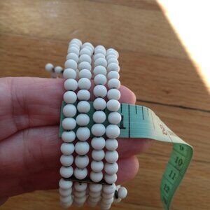 Vintage White Milk Glass Bracelet Beaded Wrap Cuff Expandable MCM Rockabilly Ret
