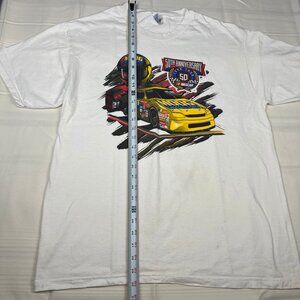 Vintage White Nascar 50th Anniversary Moog Chasis Parts Hanes T Shirt Mens L