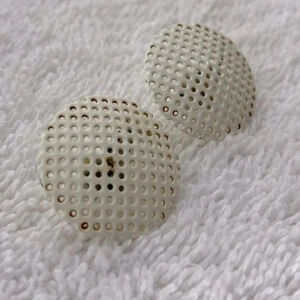 Vintage White Painted Metal Mesh Circles Clip On Earrings