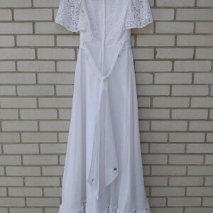 Vintage White Party Dress / Wedding Bridal Gown with Lace Bodice and Flounce Sleeves