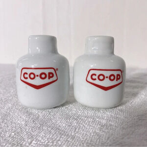 Vintage White Red Co Op Ceramic Propane Tank Salt & Pepper Shakers