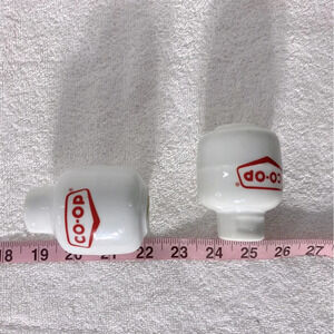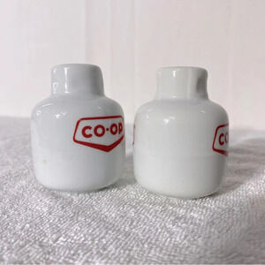 Vintage White Red Co Op Ceramic Propane Tank Salt & Pepper Shakers