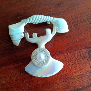 Charming vintage brooch shaped like a rotary phone.