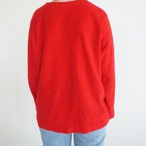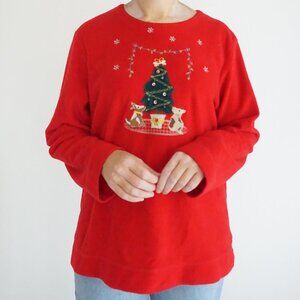 Vintage White Stag Red Embroidered Christmas Dogs & Trees Fleece Sweater L