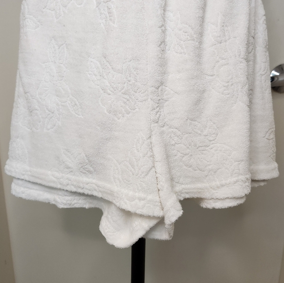 White on White Floral Rose Pattern Terrycloth Onesie Romper Jumper Swim Cover-up with stretch hem and waist, by SporTek.