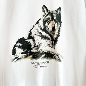 Vintage White Wolf Motif Sweatshirt Winter Watch by Vic Gibbons L