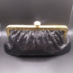 Vintage Whiting & Davis Black Mesh Metal Evening Bag Purse Rhinestone kiss lock