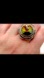 Striking cocktail ring by Whiting & Davis, featuring a luminous rainbow glass stone that shifts from gold and red to blue and green under the light. Whiting & Davis pieces remain highly collectible. This ring adds a touch of vintage glamour and psychedelic sparkle.
