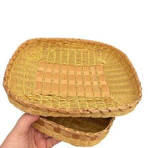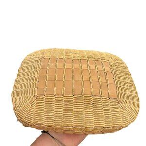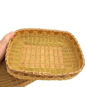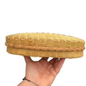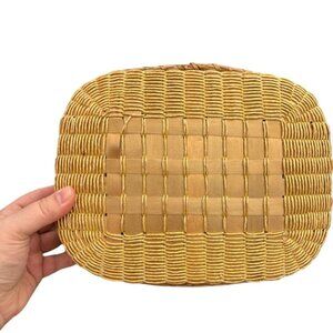 Vintage Wicker Ratan Lidded Storage Basket Boho Cottagecore