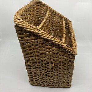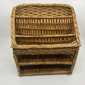 Vintage Wicker Rattan Desk Organizer Letter Holder Tray Sturdy Woven