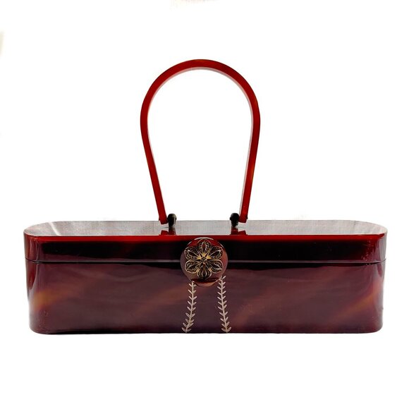 Vintage 1950s Wilardy lucite faux tortoiseshell box purse handbag with top handle