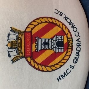 Vintage Wilson International Products Ltd. HMCS Quadra, Sea Cadet Summer Training Establishment, Comox, British Columbia blue and white Snapback Truckers hat.