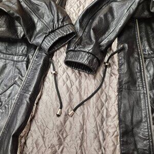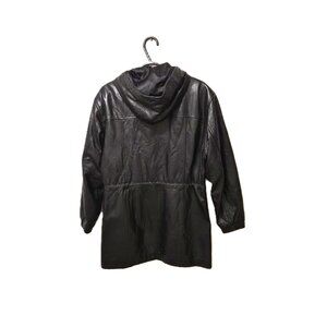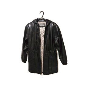 Vintage Wilsons Leather Black Hooded Coat S Tomboy Grunge Y2K Minimalist Matrix
