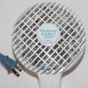 This vintage Windmere Curly Top Diffuser Hair Dryer Model CT-1/467 is in great clean working condition. Features 2 heat settings. 1200w . Corded.