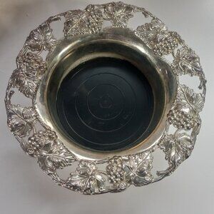 Vintage Wine Bottle Coaster Godinger Silver Plated1988 Grape & Leaf Design 7"