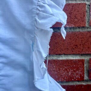 Pls note that there is a small hole and tear in the ruffle trim. Pls review all photos.