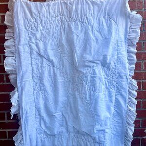 The sweetest vintage Pooh baby quilt with ruffle trim.