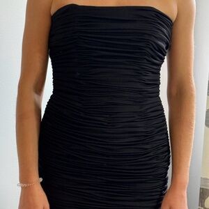 This stunning black party dress from Winston's in Toronto is made from silk and tulle. The ripped bodice gives the dress great structure.