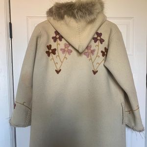 Winter jacket that is handcrafted by Inuits. Real fur. Buttons are made from caribou bone. Some discolouration from time. Fur is thinning around sleeves and some other smaller parts.