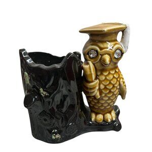 Vintage Wise Rhinestone Eye Owl by Stump Pencil Holder Vase