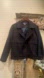 Vintage Woenfa Men’s Wear solid dark navy bomber jacket. No material tag but feels like a vintage poly/wool blend. Button-up front; neck button missing (buttonhole only). Has one extra waistband buttonhole that appears non-functional—part of original design. Lining is very clean.