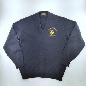 Indulge in the heritage of Scottish craftsmanship with this Vintage Blue Wolsey Lambswool Sweater. Made from pure lambswool, this sweater not only offers luxurious warmth but also exudes timeless elegance. The addition of the Yellow The Black Horse Rottingdean emblem on the chest adds a unique touch, making it a distinctive piece for your wardrobe.