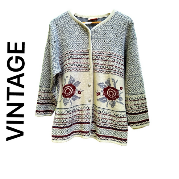 Vintage Women Roses Patterned Grandma Cottagecore Cardigan Medium