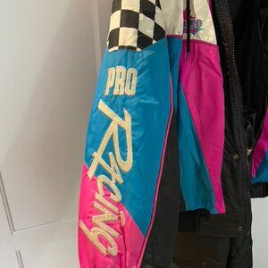 This is a cool 90's vintage snowmobile suit from Choko with neon accents. Labeled a ladies medium, this fits a modern women's small to medium comfortably. The pants are all black.
