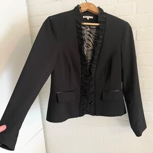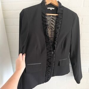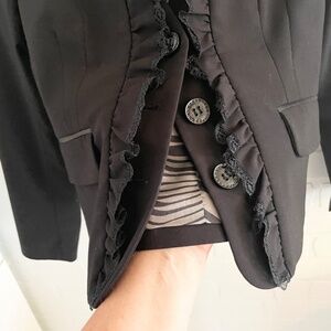 Vintage Women’s Bazer Ruffled Lace trim Tuxedo Formal Business casual Goth Sz M
