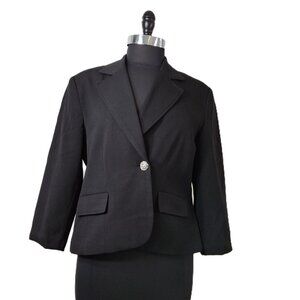 Vintage Womens Black Cropped Blazer Plus Sz 16 Petite Lined Office Smart