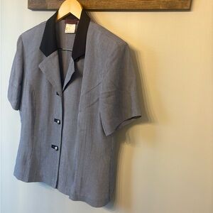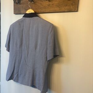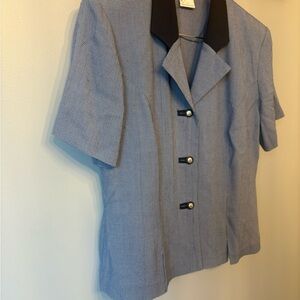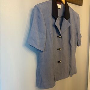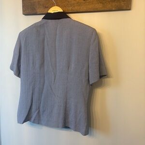 Vintage Women's Blue and Navy Button Down short sleeved Shirt size 8