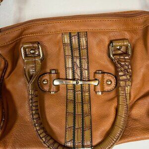 Vintage Women's Brown Faux Leather Satchel Shoulder Bag Medium