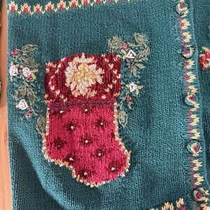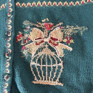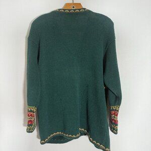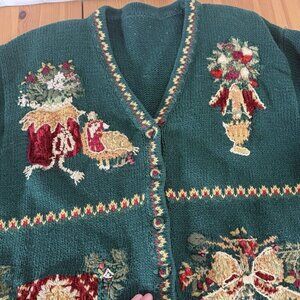 Vintage Womens Chirstmas Cardigan Sweater Green Holiday Ramie Cotton XL